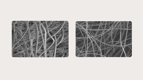 Under mikroskop kan man se, at Exufiber® bandager er fremstillet af tætpakkede fibre, så man minimerer den frie plads, hvor væske eller sårvæske kan flyde, og i stedet binder den.